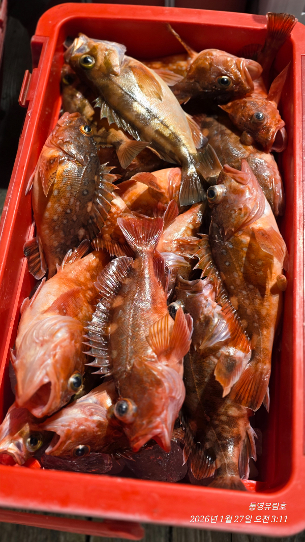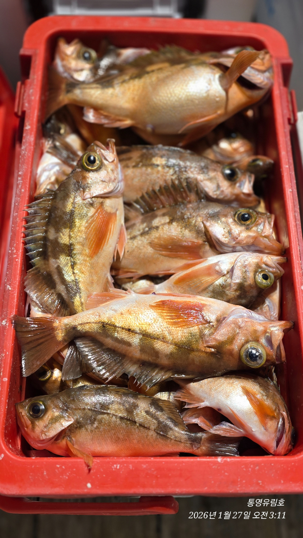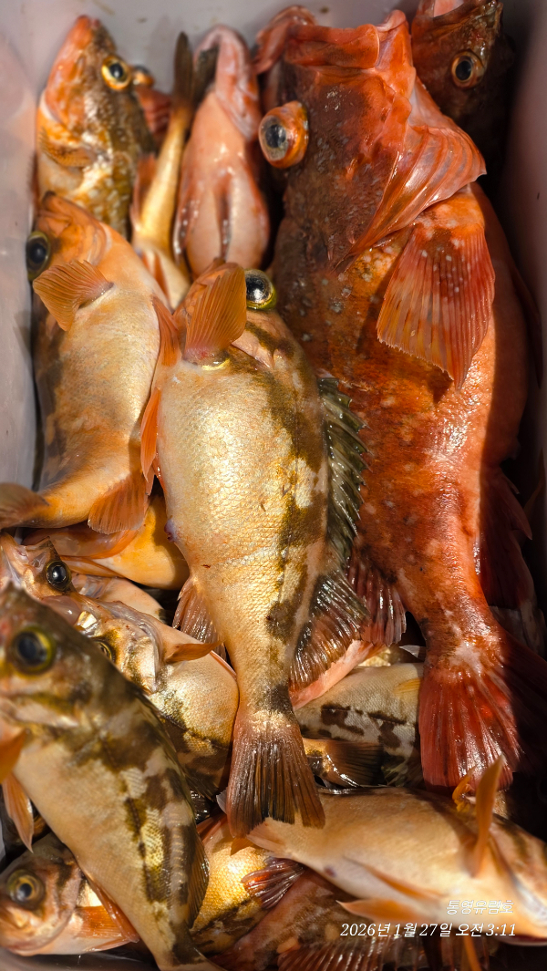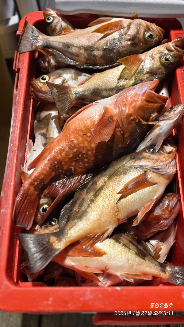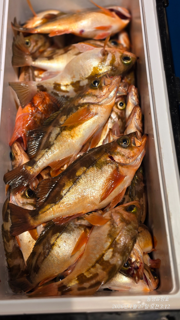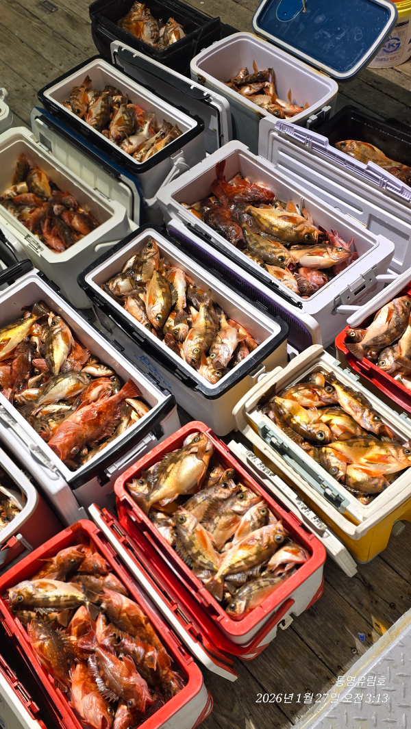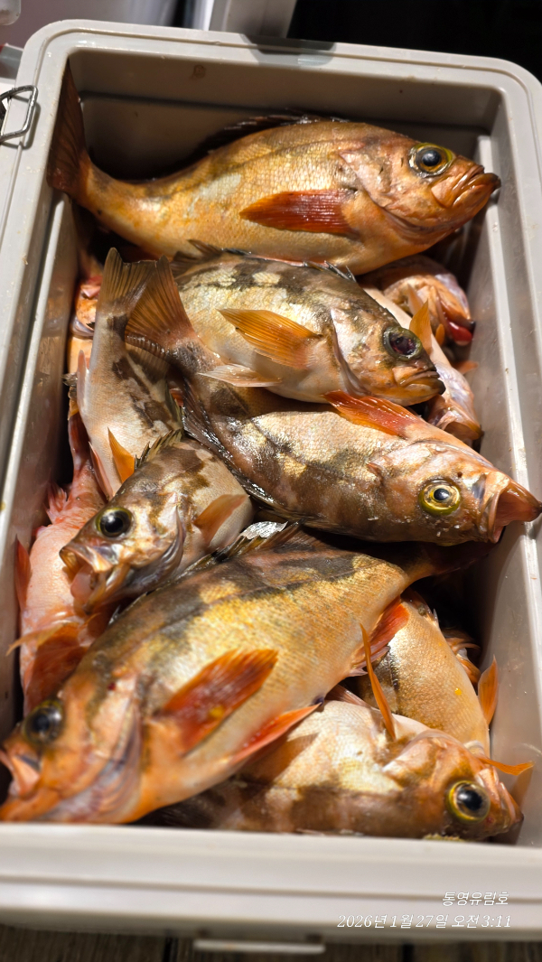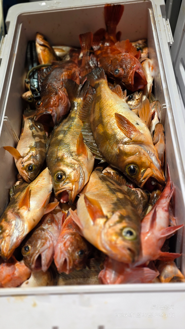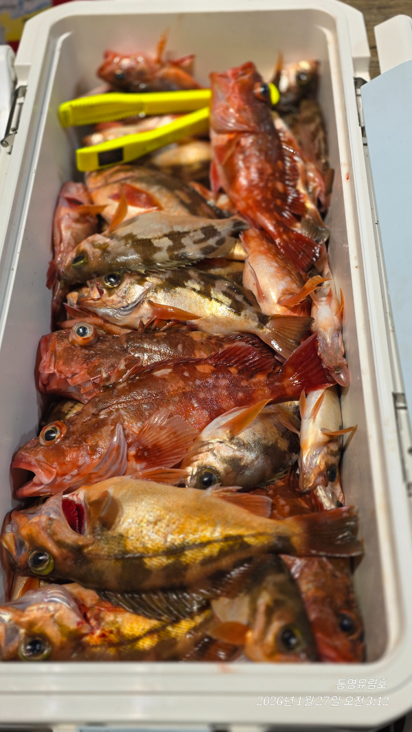 | 제목 : 통영유림) 27일.왕열기.뽈락.쏨벵이.대왕우럭등으로 쿨러만땅.오늘예약가능 | ||